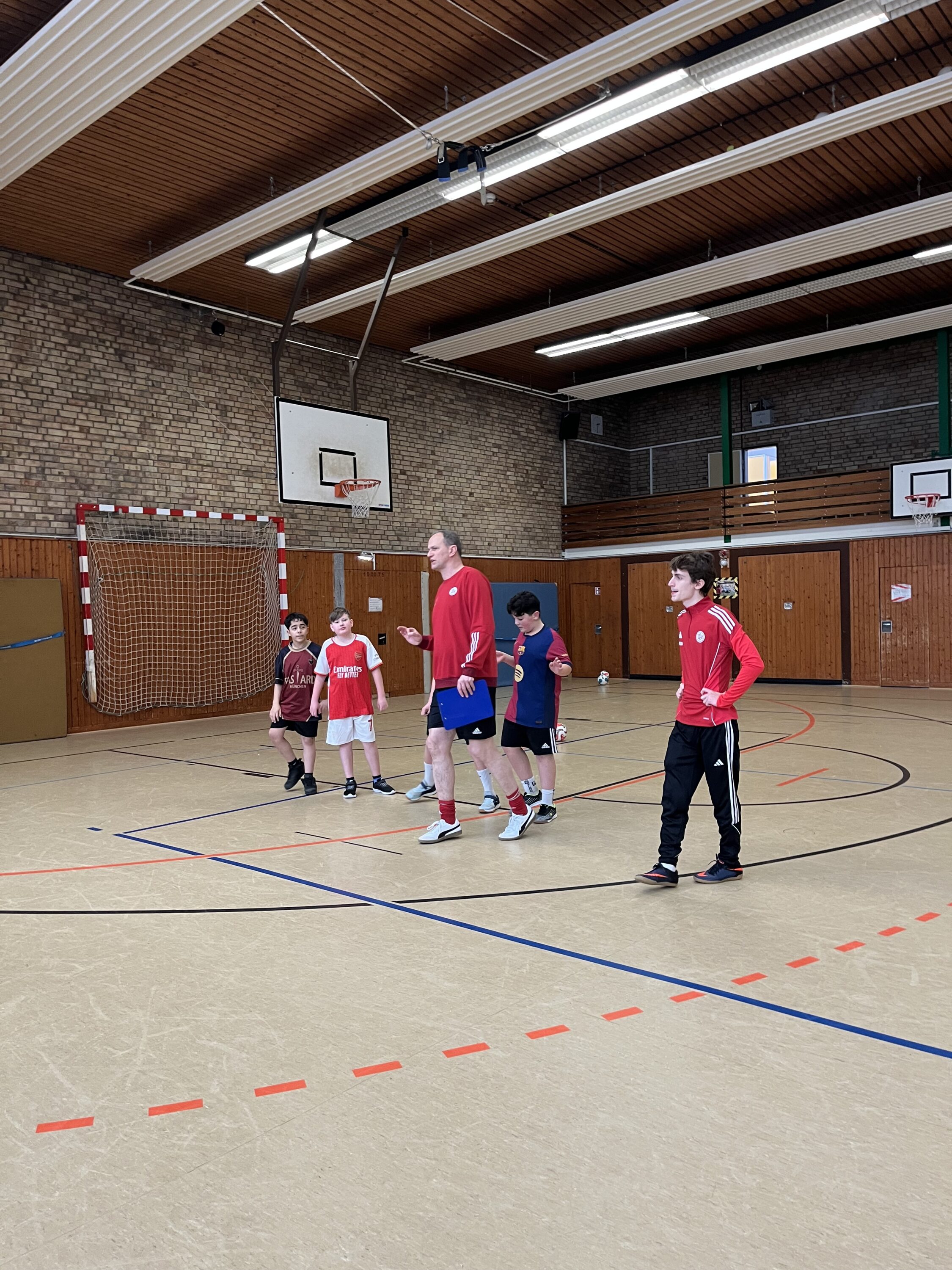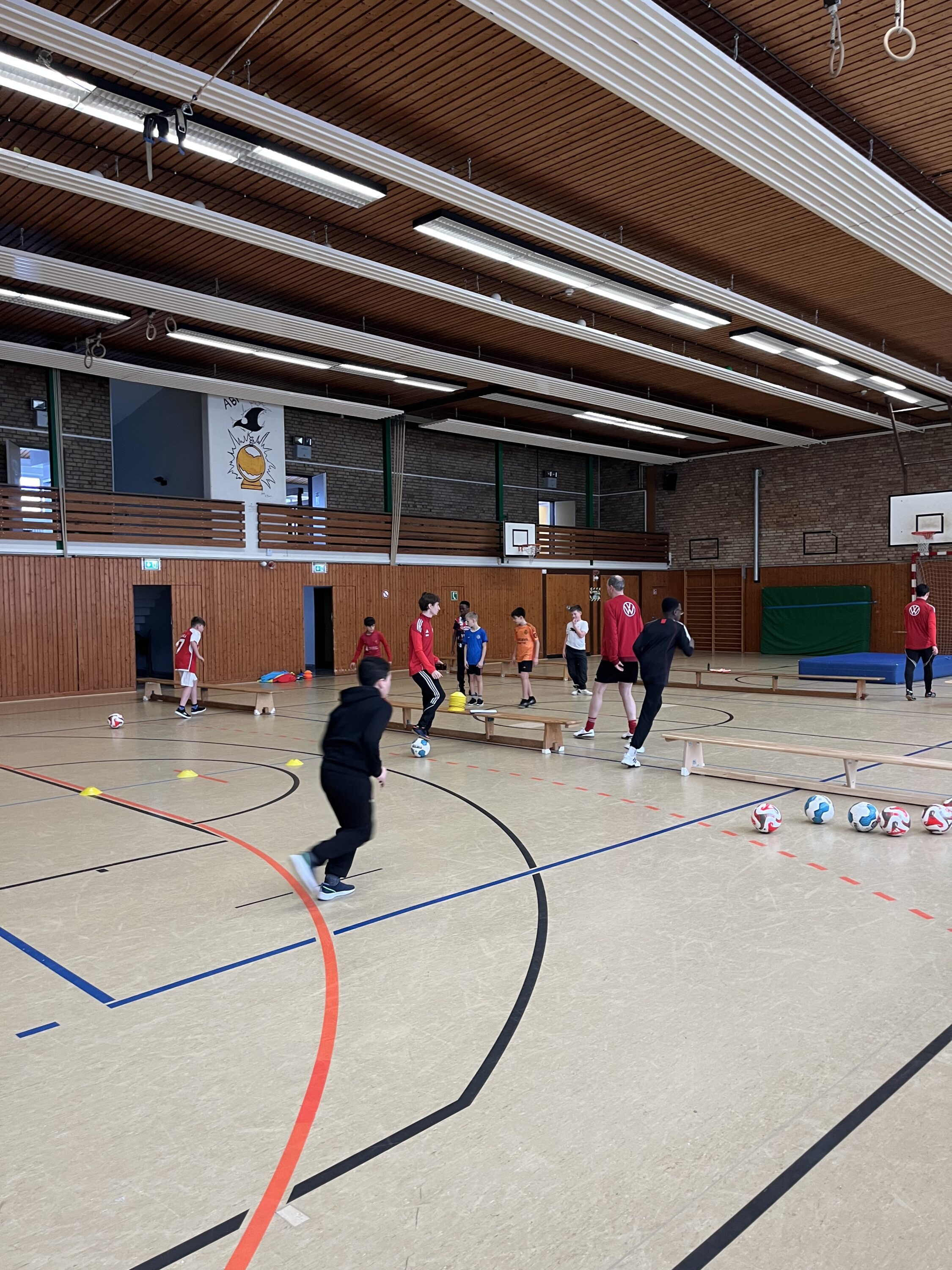 Ein besonderes Highlight erlebte die Fußball-AG des Kranich-Gymnasiums: Das DFB-Mobil machte am 11.02.2026 Station auf unserem Schulgelände, mit an Bord die DFB-Trainer Mats, Christian und Tim. In einer intensiven 90-minütigen Trainingseinheit erhielten unsere Schüler der Fußball AG spannende Einblicke in moderne Trainingsmethodik und neue Spielformen. Von Beginn an herrschte eine konzentrierte, aber zugleich begeisterte Atmosphäre. Mit viel Engagement und sichtbarer Freude absolvierten die Teilnehmenden abwechslungsreiche Übungen, die nicht nur technische Fertigkeiten, sondern auch Spielintelligenz und Teamarbeit förderten. Besonders beeindruckend war die praxisnahe Vermittlung neuer Trainingsideen, die sofort auf dem Platz umgesetzt wurden. Ein inhaltlicher Schwerpunkt lag auf der Einführung in den Futsal. Die spezielle Spielform mit ihrem sprungreduzierten Ball und dem klar strukturierten Regelwerk stellte hohe Anforderungen an Ballkontrolle, schnelles Umschalten und präzises Passspiel. Schnell wurde deutlich, wie intensiv und dynamisch diese Hallenfußball-Variante ist und wie sehr sie das technische Niveau jedes Einzelnen fördern kann. Unter dem Motto „So spielen alle Kleinen ganz groß auf“ zeigten unsere Nachwuchskicker, was in ihnen steckt. Mutige Dribblings, kluge Passentscheidungen und mannschaftsdienliches Verhalten prägten die Spielformen. Dabei stand stets der Teamgedanke im Mittelpunkt. Ein besonderes Lob sprachen die DFB-Trainer der Gruppe für ihren außergewöhnlich respektvollen und fairen Umgang miteinander aus. Die gegenseitige Unterstützung, das positive Coaching untereinander und die Disziplin auf dem Platz wurden ausdrücklich hervorgehoben. „Ein starkes Zeichen für die Werte in unserer Schule.“ unterstrich AG Leiter Dennis Neutsch das große Lob. Die Veranstaltung war für alle Beteiligten ein voller Erfolg. Neue Impulse, viele strahlende Gesichter und jede Menge Motivation für die kommenden Trainingseinheiten bleiben in Erinnerung. Als Abschluss erhielt jeder Teilnehmer ein kleines Geschenk. Die Fußball-AG freut sich schon jetzt auf ein mögliches Wiedersehen mit dem DFB-Mobil.