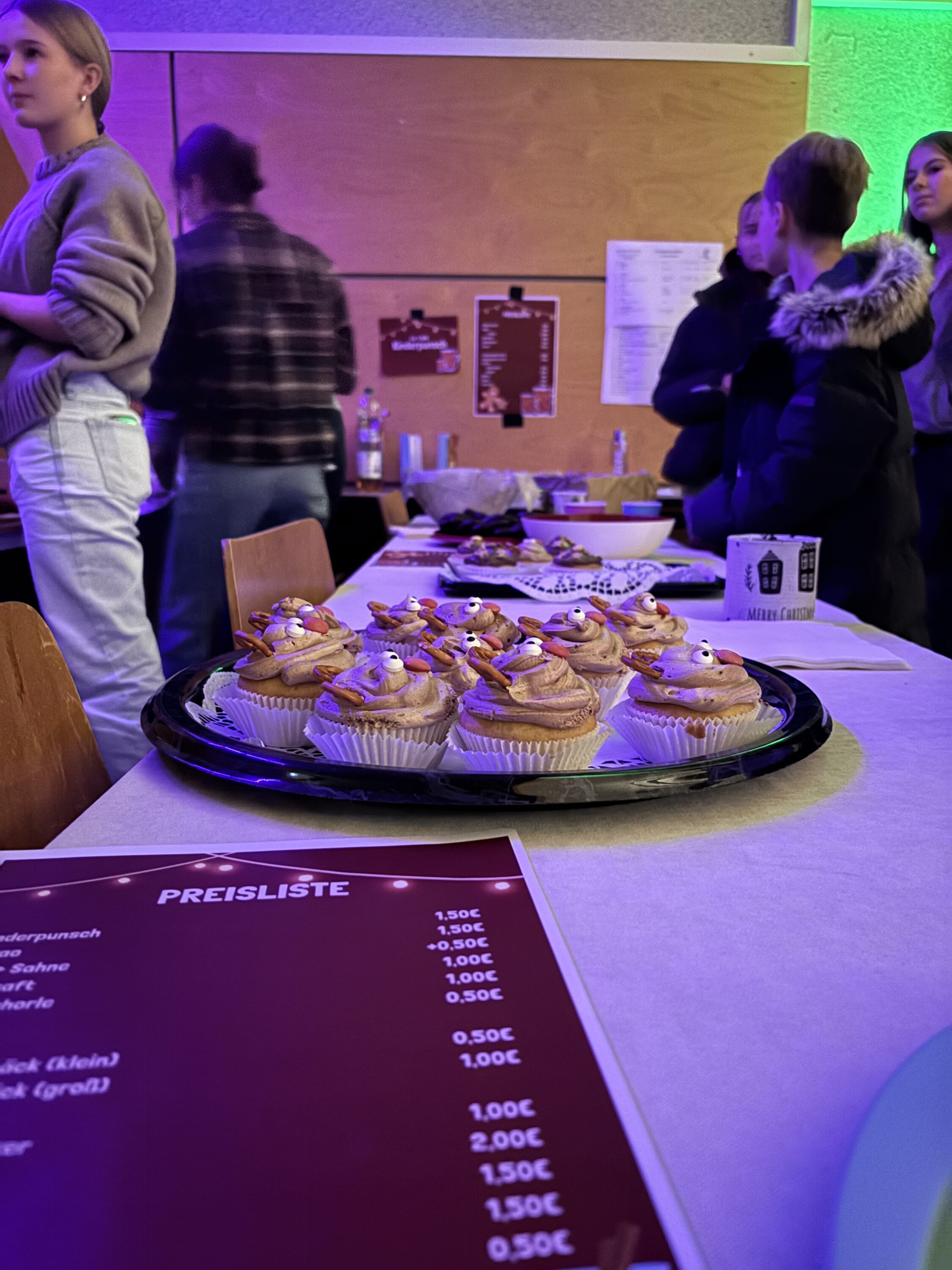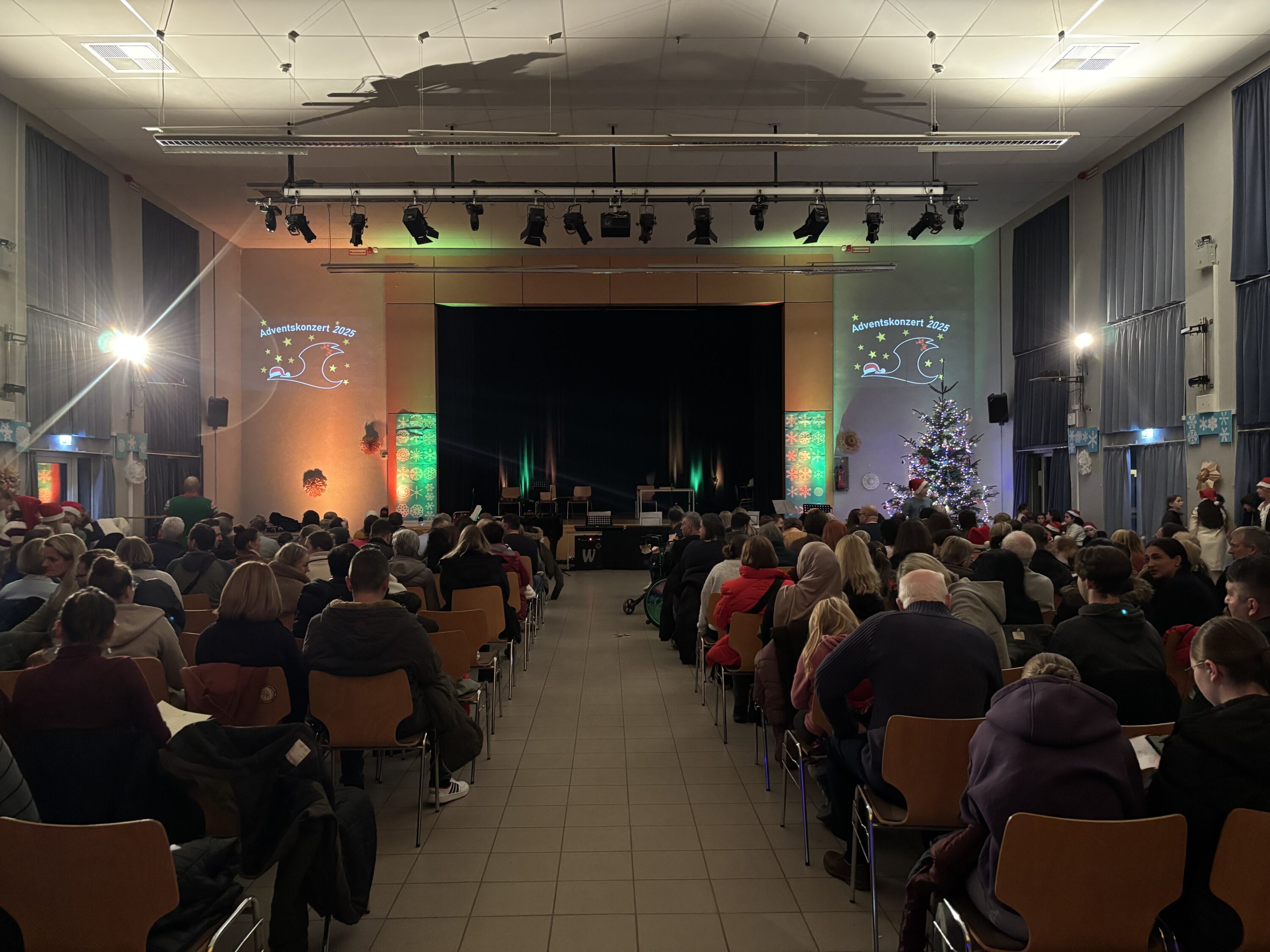 Am Mittwoch darauf ging es weiter mit dem Weihnachtskonzert, das in diesem Jahr mehr als nur eine musikalische Vorstellung war. Neben zahlreichen instrumentalen und gesanglichen Beiträgen verschiedener Schüler-/Lehrer:innengruppen wurden auch Gedichte vorgetragen, selbstgebastelte Kunst verkauft, während der 13. Jahrgang die vollbesetzte Aula mit Waffeln, Kuchen und Heißgetränken versorgte.
